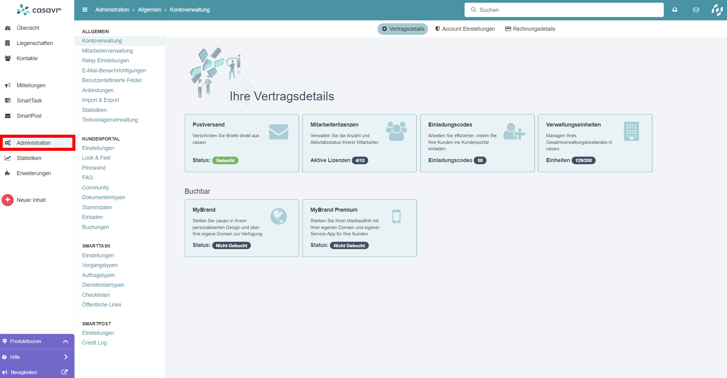 Administration „casavi mit erweiterten Rechten“: Sehen Sie sich die einzelnen Funktionen und Einstellungen an, die Sie im Administationsbereich vornehmen können.